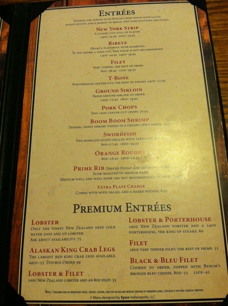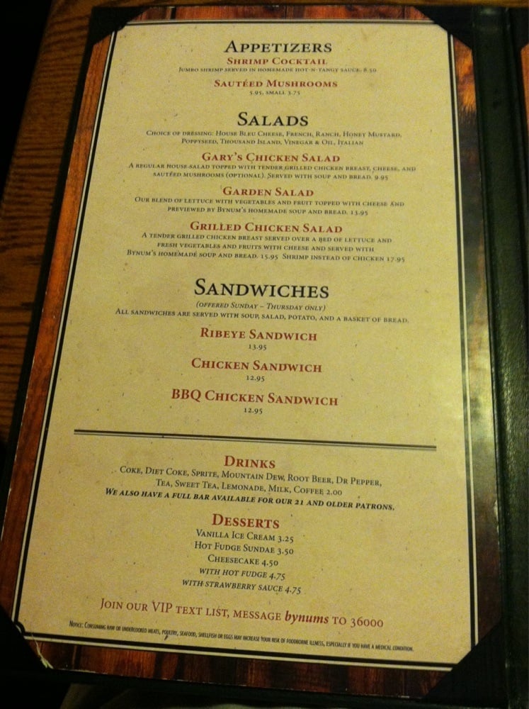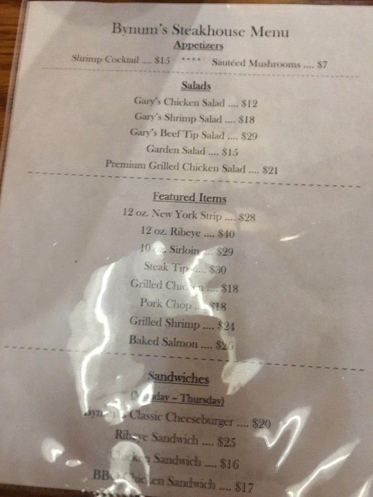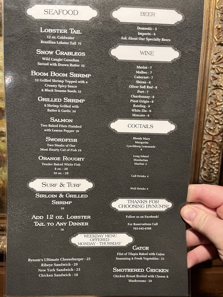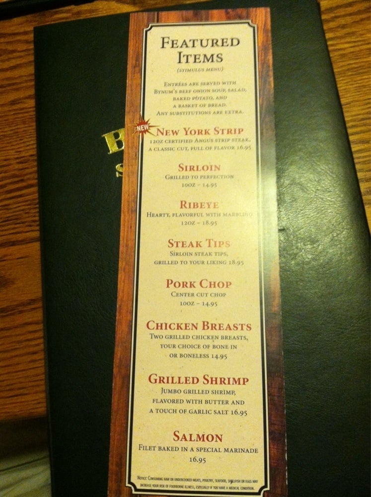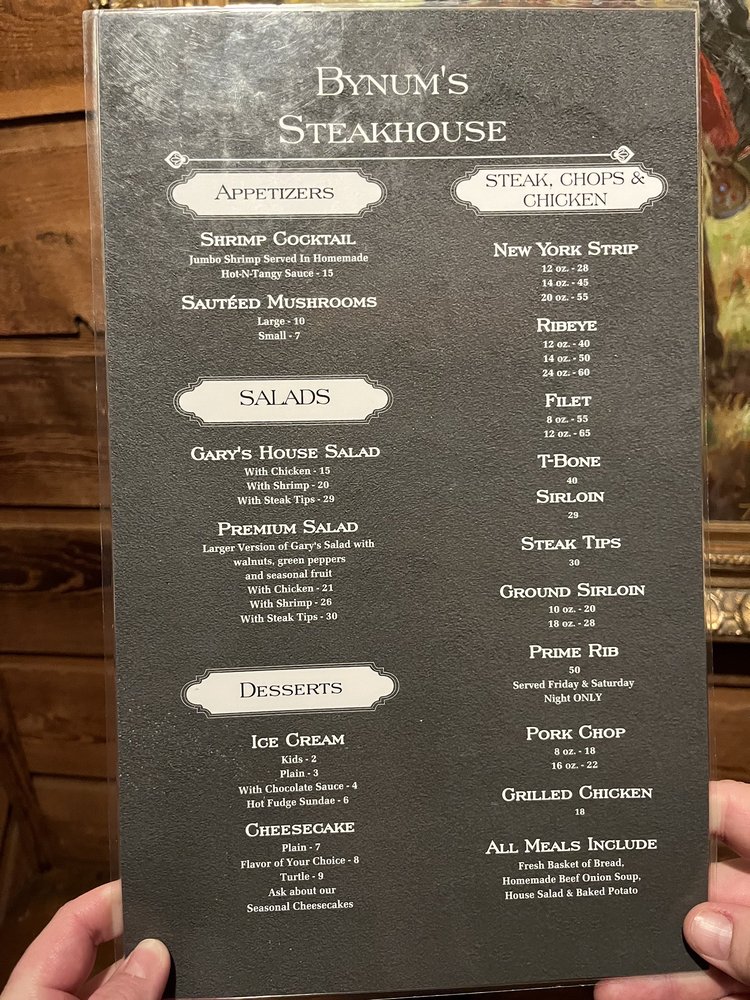 Bynum's Steakhouse, located in Martinsville, offers a casual and loud atmosphere for steak and seafood lovers. The restaurant provides a variety of options, including steaks, seafood, and sandwiches. Customers have praised the good service and ambiance, making it a recommended spot for various occasions. The menu features dishes like ribeye, prime rib, and sirloin steaks, along with sides like soup, salad, and baked potatoes. The grilled bread with garlic butter is a standout appetizer, while the generous portion sizes and flavorful steaks have left diners satisfied. The staff has been commended for their attentiveness and willingness to go above and beyond for customers, enhancing the overall dining experience. Overall, Bynum's Steakhouse stands out as a top-notch steakhouse with classic dishes and excellent service.